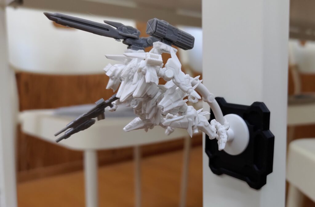 ディスプレイベースはカプセルマシナリー付属のアームを装着できるほか、中央の穴にマグネットを入れると壁にくっつけて遊ぶことができます
